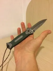 This kind of One Handed Knife is forbidden is forbidden in hand luggage in Germany. However it is not forbidden to own a knife like this in Germany. But it is as well forbidden to carry it there in public.